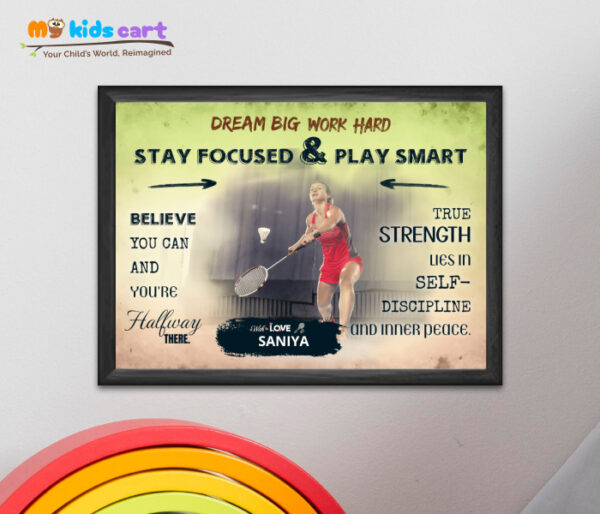 Badminton Customized Girl Poster Personalized Motivational Wall Art (Framed)
