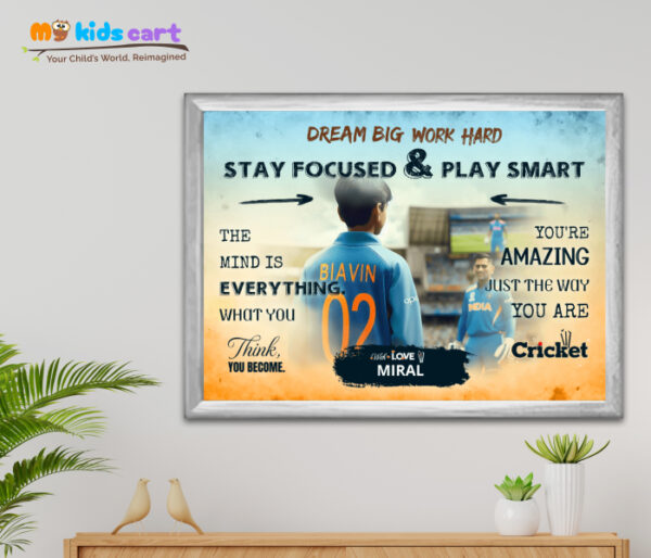 Be the first to review “Cricket Player Boy with MS Dhoni Personalized Motivational Colorful Background Wall Art (Framed)”