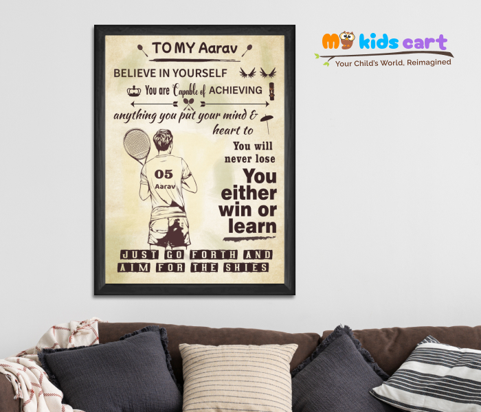 Customized Badminton Boy Poster Personalized Motivational Wall Art (Framed)
