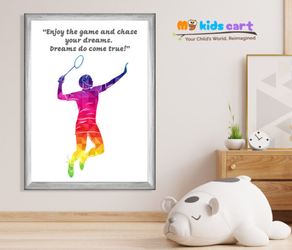 Customized Badminton Boy White Background Poster Personalized Motivational Wall Art (Framed)