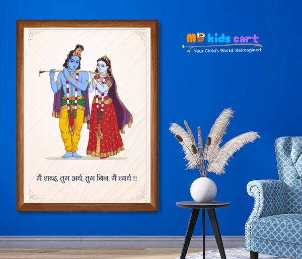 Radha Krishna Love Cream Background Quote Personalized Motivational Wall Art (Framed)
